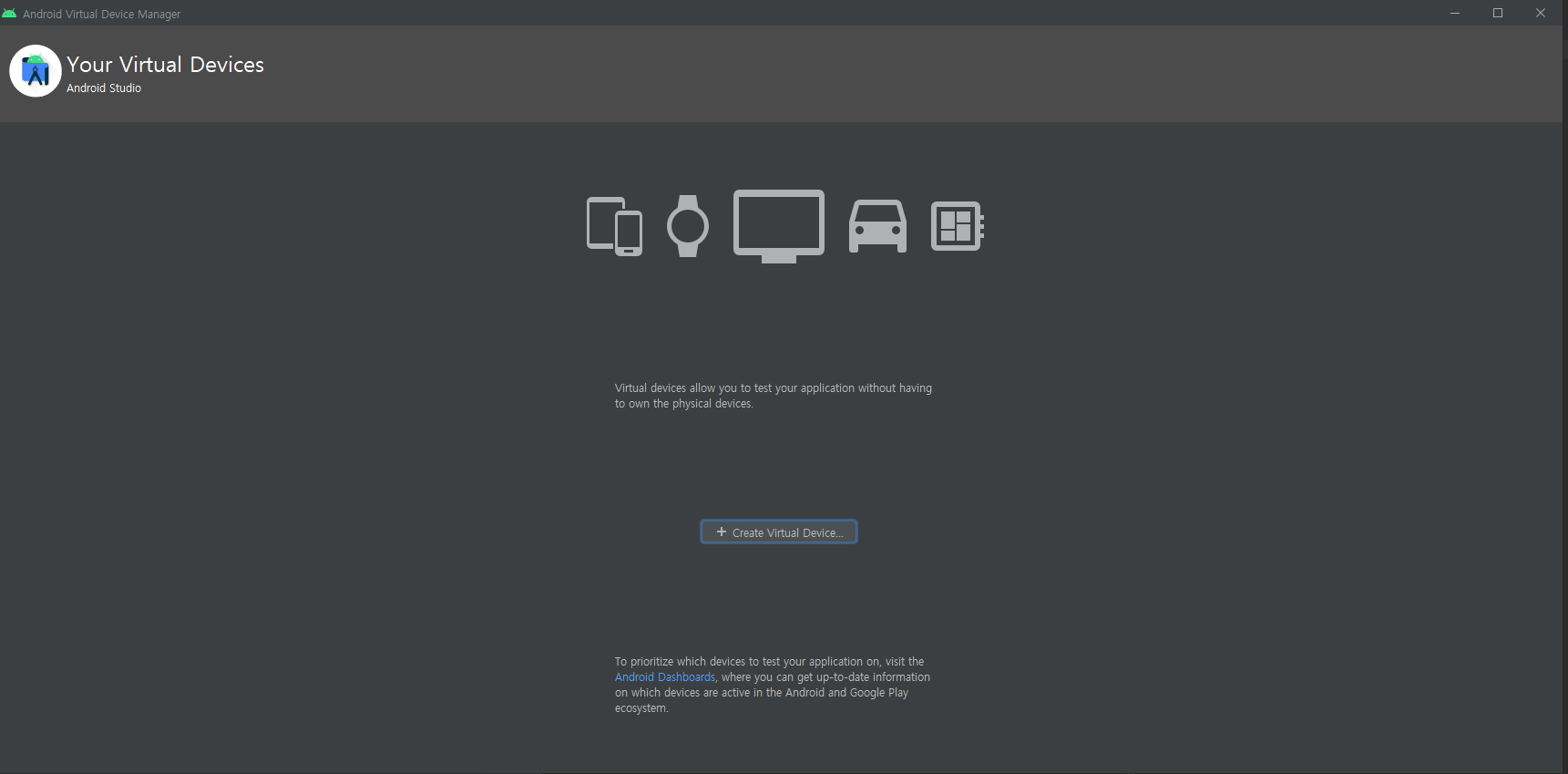 상단바에 빨간 동그라미 친 AVD Manager를 클릭해줍니다
