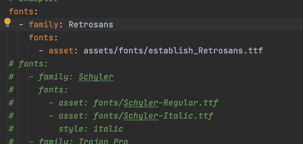 pubspec.yaml에 가서 아래처럼 폰트를 등록해준다